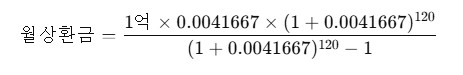 - 월 이자율: 연 이율을 12로 나눈 값.