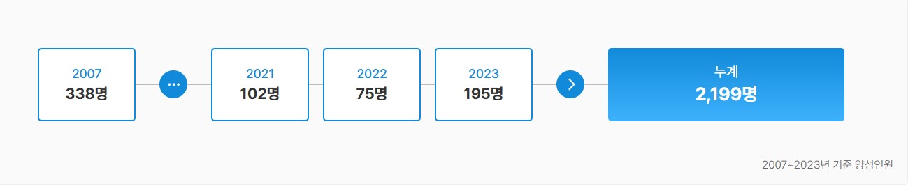 매년 3월부터 10월까지 공고기간을 참고하셔서 신청하셔야 합니다. 매 기수당 최대 60명밖에 모집을 하지 않으니 지금 바로 신청하셔서 기회를 놓치지 않아야 합니다.