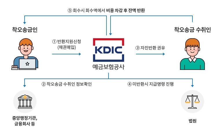 ⑤회수 완료 시 회수액에서 회수에 소요된 비용을 차감한 후 잔액을 착오송금인에게 반환합니다.