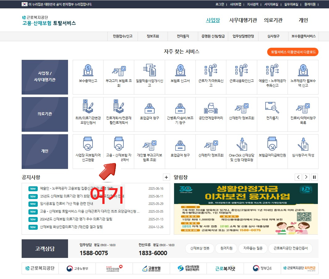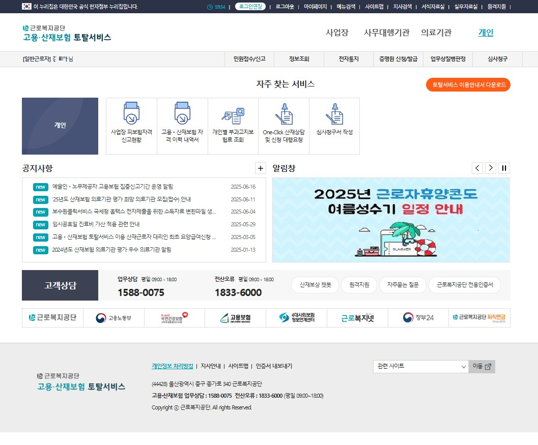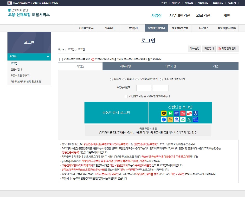 근로복지공단 고용·산재보험 토탈서비스(WEB)